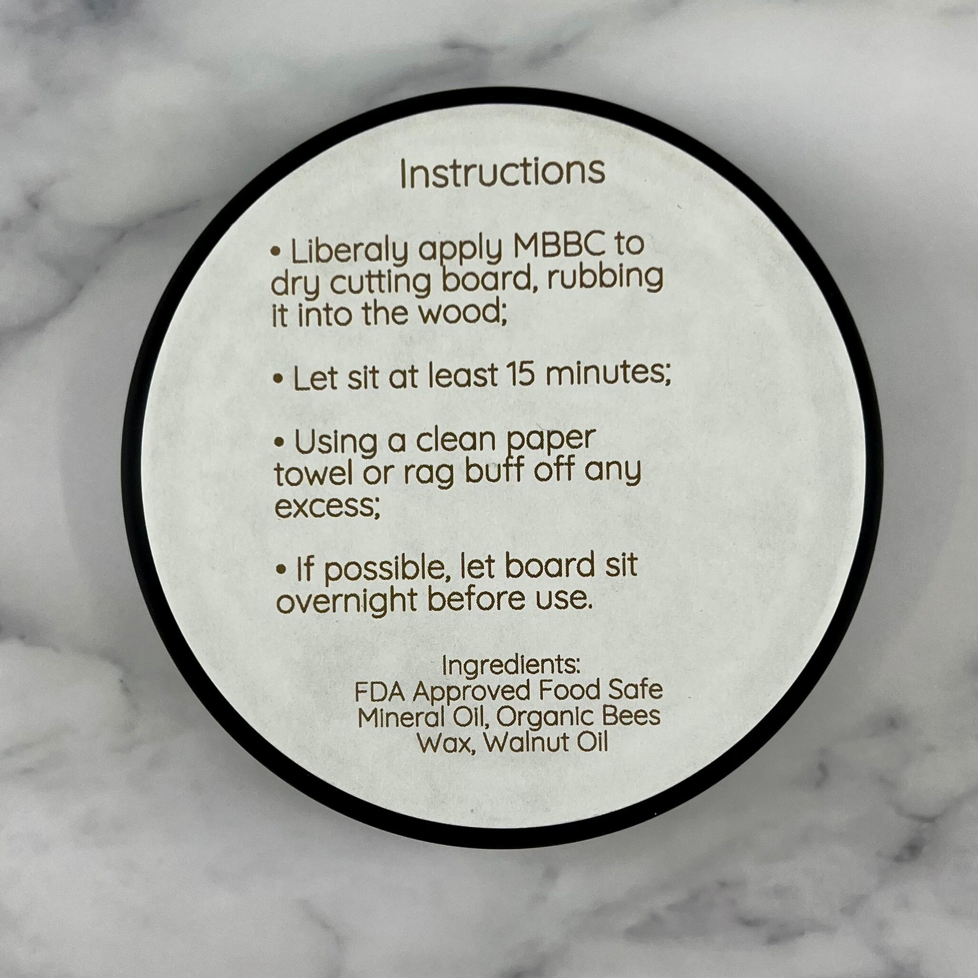 MBBC is a special blend of FDA-approved, food-safe, mineral oil, organic beeswax, and walnut oil.